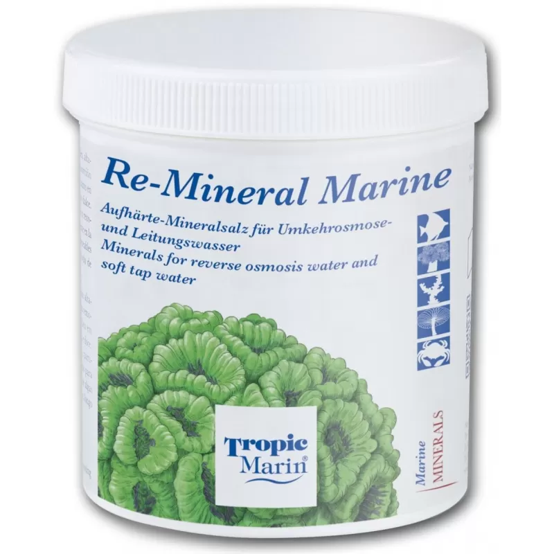 Omgekeerd osmosewater wordt vaak gebruikt om verdampt water van het aquarium te vervangen. Maar omgekeerde osmose verwijdert niet alleen schadelijke stoffen maar ook waardevolle mineralen. Met Tropic Marin® RE-MINERAL MARINE krijgt het water van omgekeerde osmose al zijn heilzame natuurlijke mineralen en stoffen terug. Tegelijkertijd wordt de alkaliteit verhoogd en gestabiliseerd.