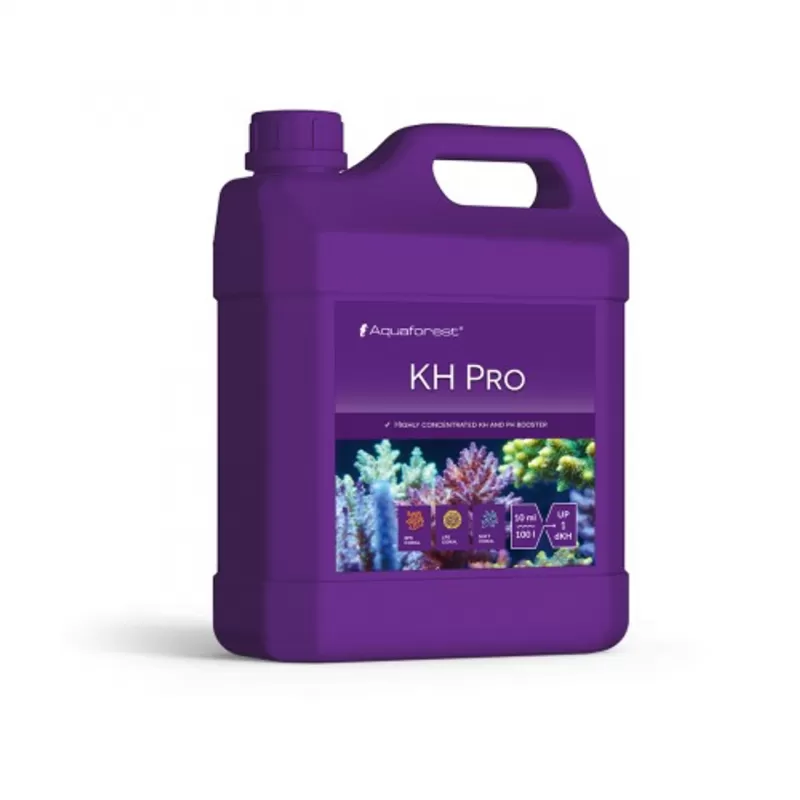 Aquaforest KH Pro is een geconcentreerde oplossing die speciaal ontwikkeld is voor het verhogen en behouden van een stabiele carbonaathardheid (KH) in zoutwateraquaria. Een juiste KH-waarde is cruciaal voor een stabiel pH-niveau en de opbouw van koraalskeletten, wat dit product onmisbaar maakt in elk rifaquarium.