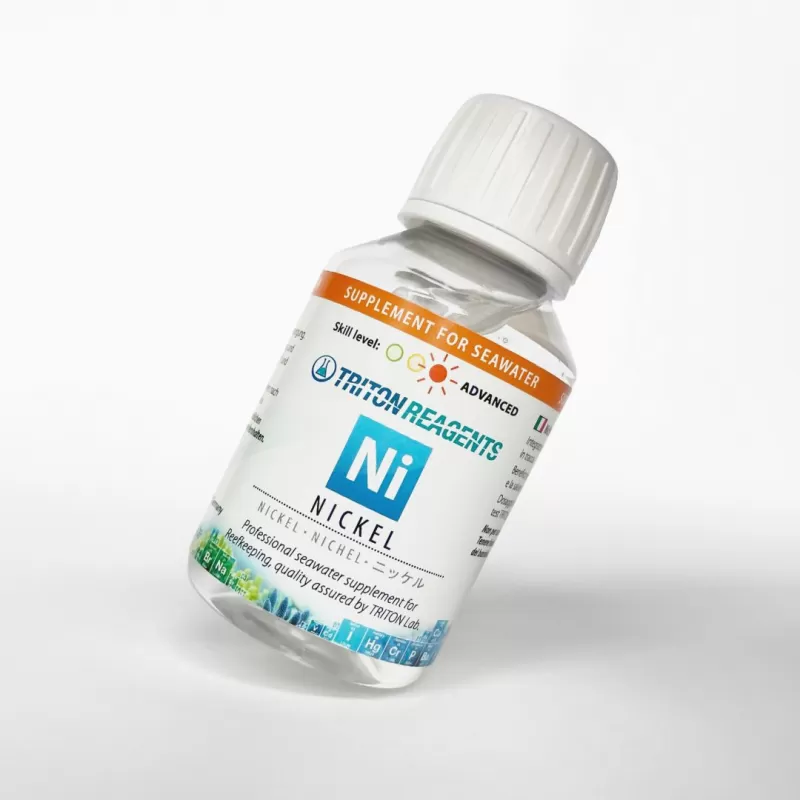 Nikkel spoorelement zeewater supplement. Gunstig voor SPS/LPS koraalkleur en gezondheid. Let op: alleen te gebruiken door gevorderde aquarianen.