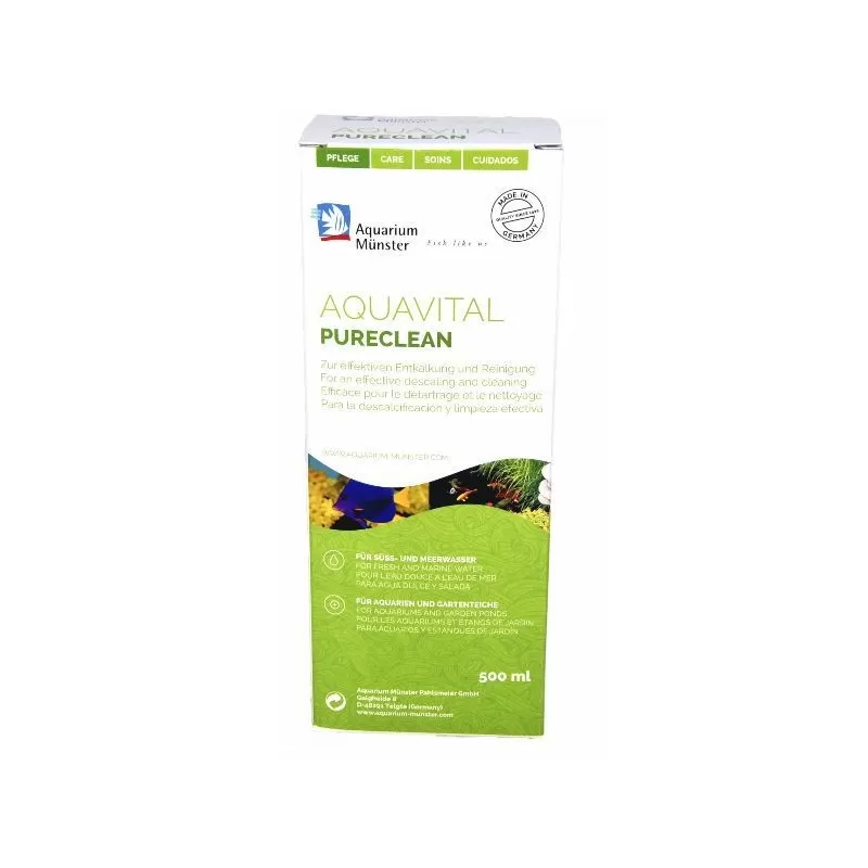 - Aquavital pureclean ontkalkt en reinigt pompen, CO2- diffusors en soortgelijke apparaten voor de aquaristiek of vijver, het tast geen kunststoffen, metalen of afdichtingen aan.