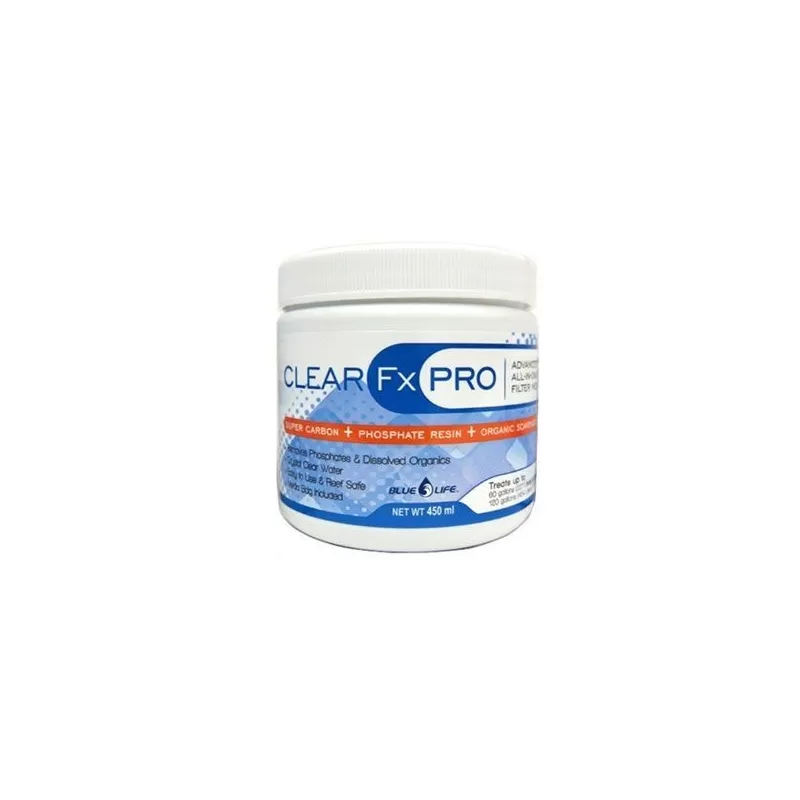 CLEAR FX PRO bevat een op kool gebaseerde korrelige actieve kool (GAC). Het product biedt de hardste beschikbare koolstof die nog steeds werkt wanneer het in water wordt gebruikt. Het hoge oppervlaktegebied en de duurzaamheid van onze unieke koolstof zorgt ervoor dat CLEAR FX PRO langer meegaat en verslechtert na verloop van tijd. In tegenstelling tot andere op koolstof gebaseerde filtratiemedia, zal het extreem lage asgehalte van CLEAR FX PRO niet leiden tot een opening in het hoofd of de laterale lijn in uw aquarium.