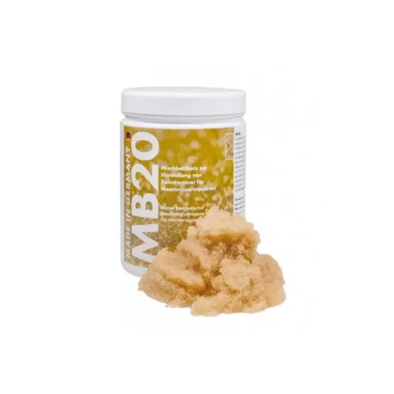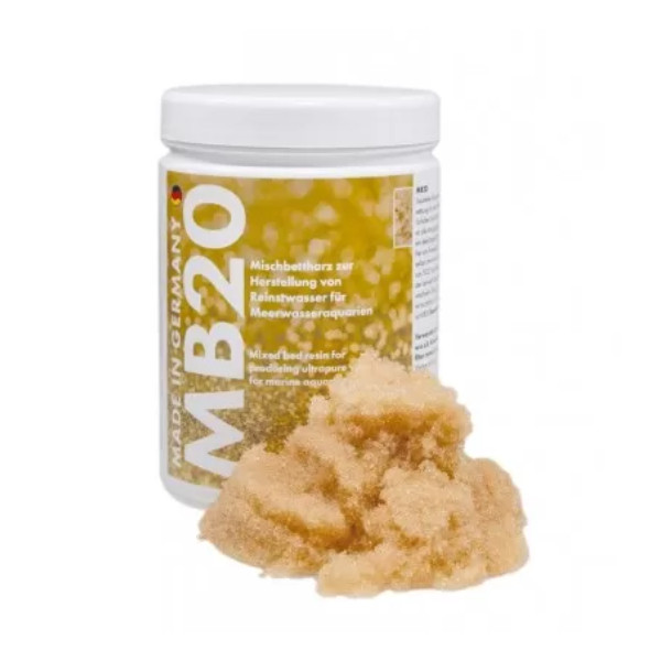 - Ultra MB 20 is een gemengde hars die na het omgekeerde osmose proces de meeste ionen verwijders zoals nitraten, fosfaten, zware metalen etc.