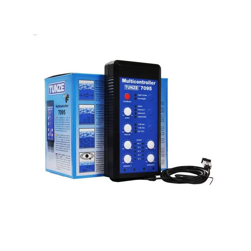 De Tunze Multicontroller 7095 is een digitaal besturingsapparaat voor alle Turbelle pompen. Het apparaat heeft een elektrische motor en simuleert de verschillende stromingsomstandigheden in een aquarium.