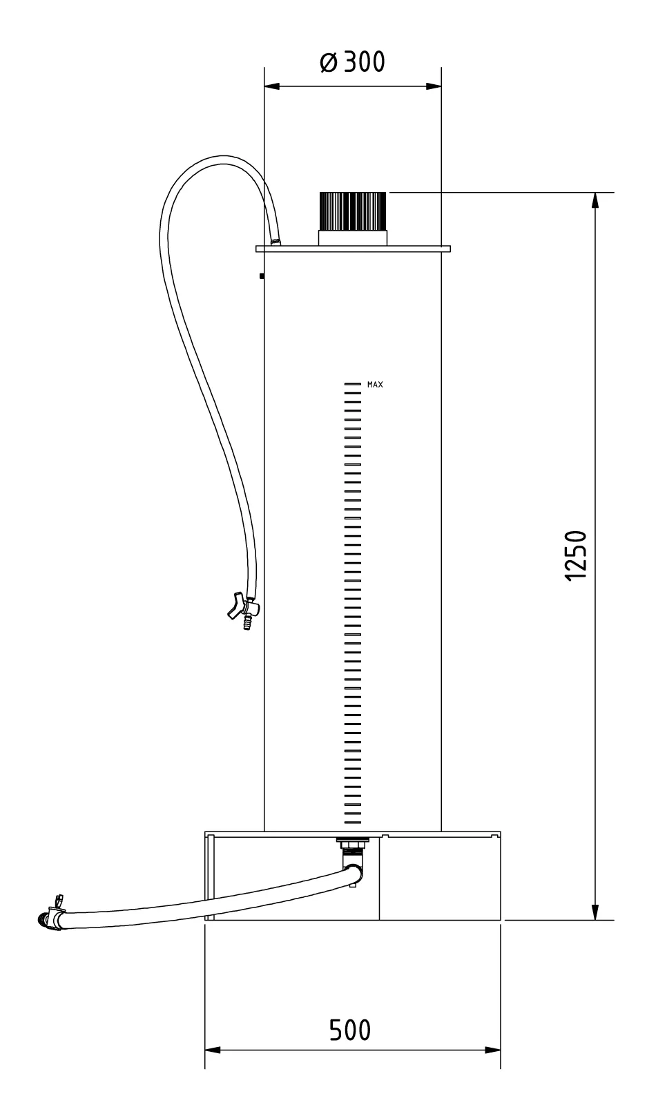 - Voetafdruk: ca. 500 x 500 mm