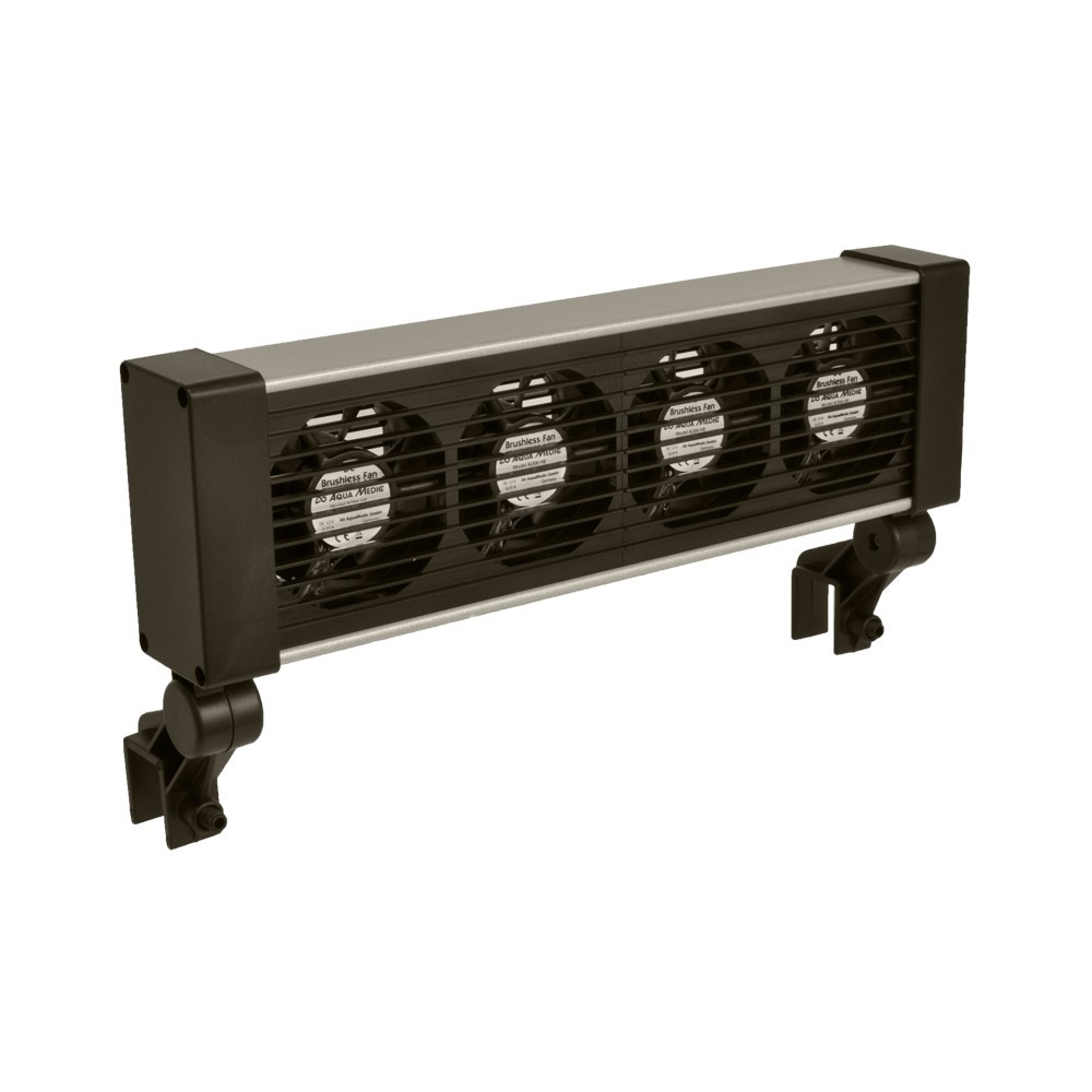 Krachtige ventilator in warmteafvoerende aluminium-kunststof behuizing voor koeling van het aquariumwater door verdampingskoeling.