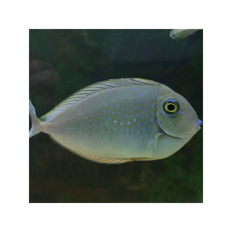De Gestippelde Eenhoornvis of Spotted Unicornfish wordt ongeveer 60 cm lang in de natuur, echter in gevangenschap blijven ze behoorlijk een stuk kleiner maar heeft wel veel zwemruimte nodig, dus zijn ze zeker niet geschikt voor kleine nano aquaria.