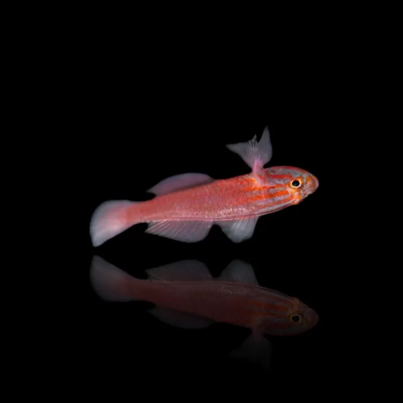 Trimma striatum is een vissoort die behoort tot de familie Gobiidae. Het staat ook bekend als de gestreepte dwerggobie en wordt maximum 3cm groot.. Wat deze vis zo bijzonder maakt, is dat hij ondersteboven in de kloven zwemt. Deze vis wordt meestal aangetroffen in de wateren van de westelijke Stille Oceaan, met name in gebieden zoals de Filippijnen en Indonesië. Het is een kleine vis die vaak te vinden is in rifsystemen en zich meestal ophoudt in koraalriffen of in de buurt van onderwaterformaties, waar hij zich verschuilt in kloven en spleten. De naam "striatum" verwijst naar de gestreepte patronen op zijn lichaam. Het is een interessante soort voor mariene biologen en liefhebbers van zeeleven vanwege zijn gedrag en uiterlijk.