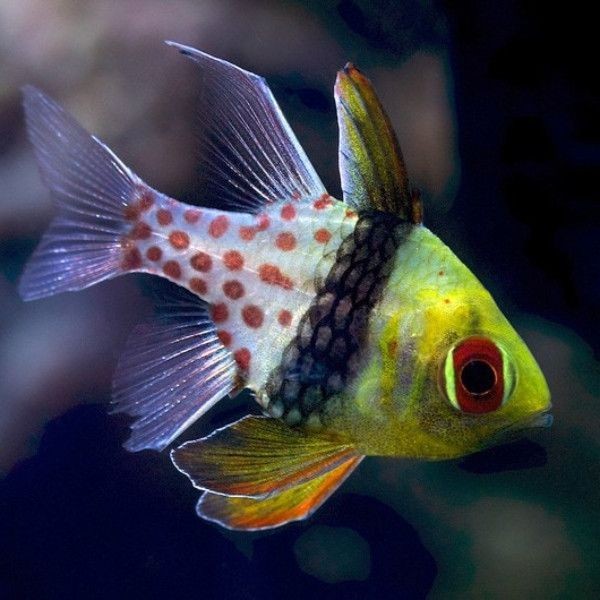De Pajama Cardinal Fish wordt ongeveer 8 cm, en is een zeer rustige zwemmer, en is als koppel of schooltje te houden.