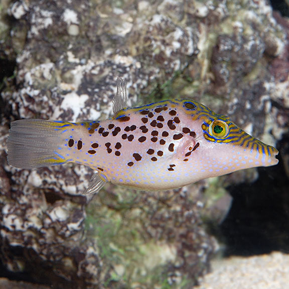 - Speels: De Leoparda Kogelvis is speels en actief in het aquarium, vaak op zoek naar voedsel of interactie met andere vissen.