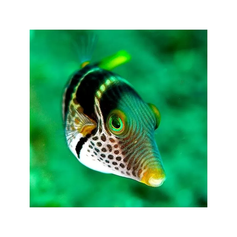 sharpnose Puffer is een kleiner blijvende soort onder de kogelvissen .Ze zijn zeer nieuwsgierig en houden alles in de gaten.