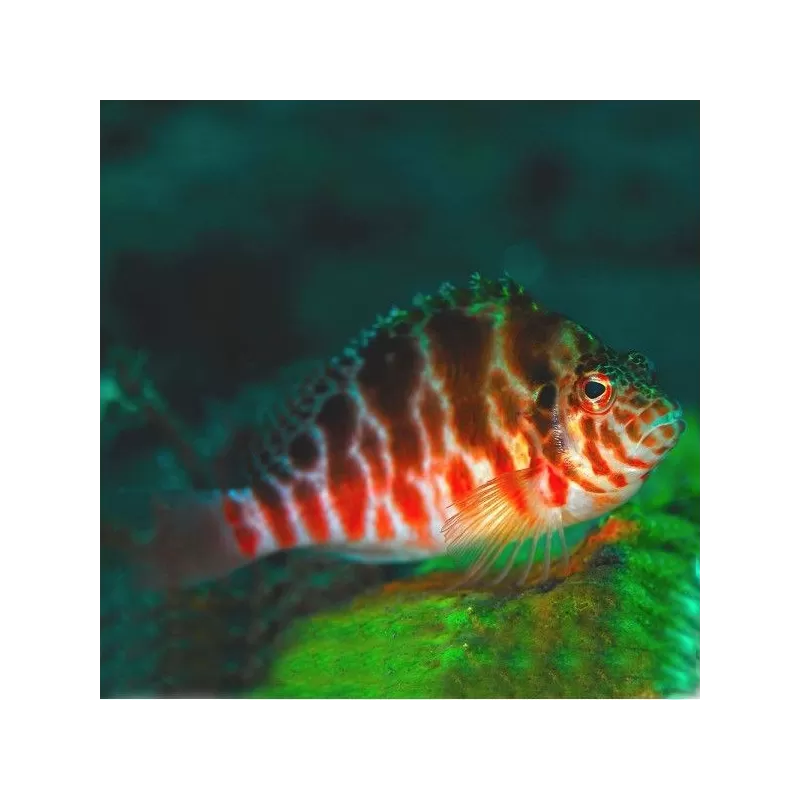Een Coral Hawkfish wordt 10 cm en is een trage zwemmer, dus zeker niet geschikt voor een aquarium met sterke stroming. Hij heeft geen zwemblaas, dat betekend dat hij zinkt en zal dus meer op de bodem en in het koraal hangen dan dat hij rond zwemt.