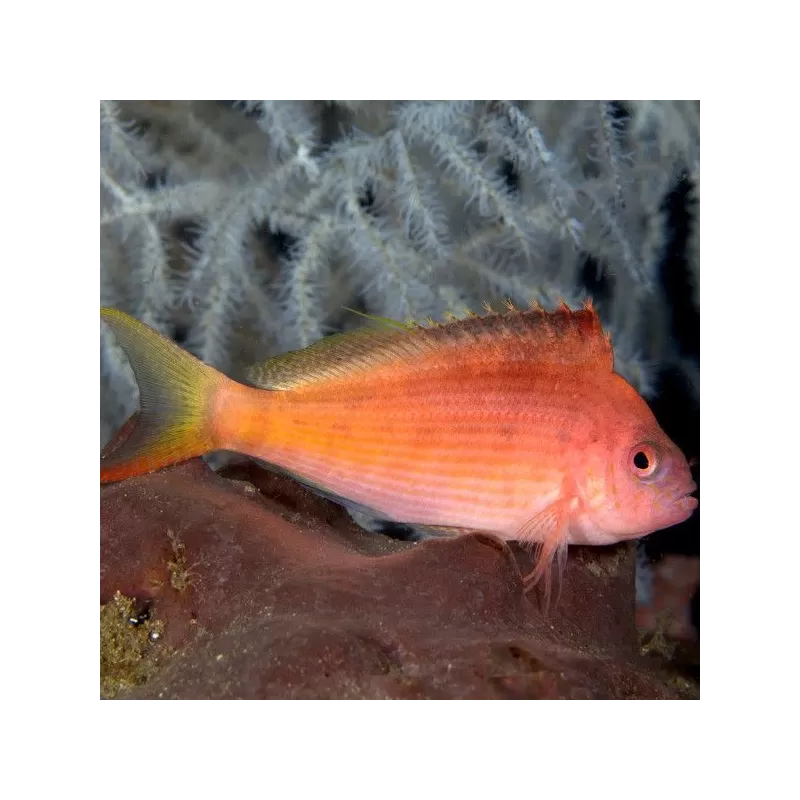 Een Swallowtail Hawkfish wordt 15 cm en is een trage zwemmer, dus zeker niet geschikt voor een aquarium met sterke stroming. Hij heeft geen zwemblaas, dat betekend dat hij zinkt en zal dus meer op de bodem en in het koraal hangen dan dat hij rond zwemt.