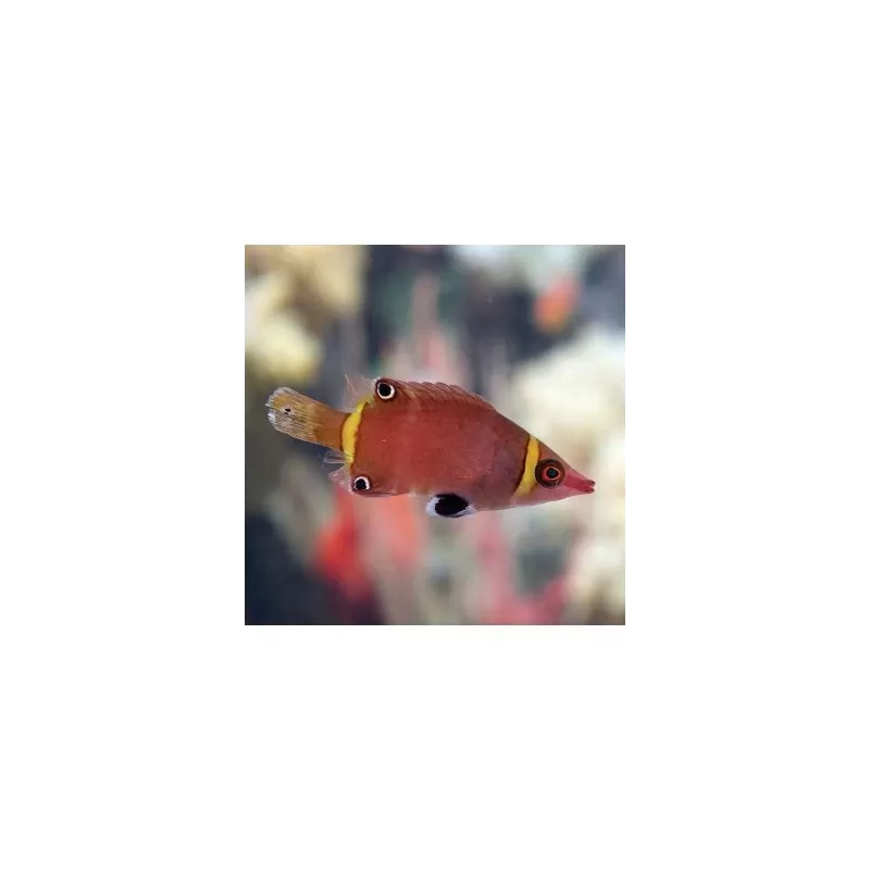 De Geelband Spitskop DwergLipvis wordt ongeveer 8 cm lang en slaapt niet in het zand zoals veel andere lipvissen, maar verstopt zich tussen het rif. Deze vis kan het beste als koppel of harem gehouden worden, dus 3 vrouwtjes en 1 mannetje.