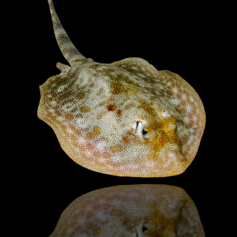 - Voeding: Carnivoor dieet, waaronder diepvriesvoer zoals garnalen, visfilet en mosselen. Deze rog zal ook kleine krabben en andere ongewervelden eten die hij in het zand kan vinden.
