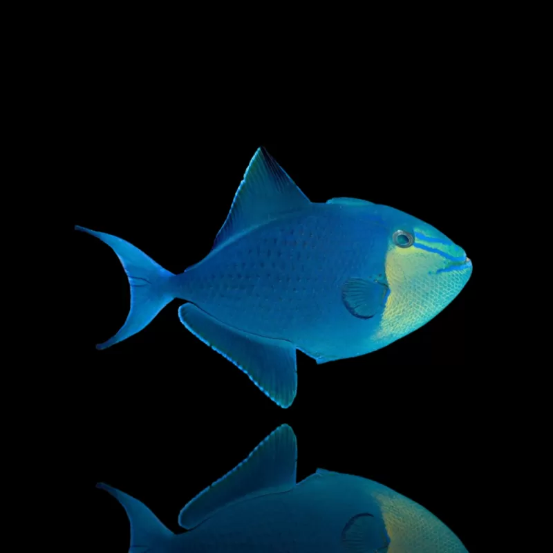 De Odonus Niger, ook wel bekend als de Blauwe Trekvis, is een indrukwekkende en actieve vis die direct opvalt in het aquarium door zijn diepe blauw-paarse kleur en krachtige zwemgedrag. Deze vis is bijzonder geschikt voor grotere zeeaquaria en rifsystemen met zorgvuldige plaatsing.