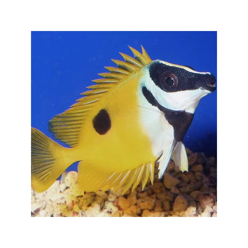 De Blotched Rabbitfish of Lo Vulpinus kleurt helemaal zwart als hij stress heeft, maar ook als hij gaat slapen, dit is dus volkomen normaal.