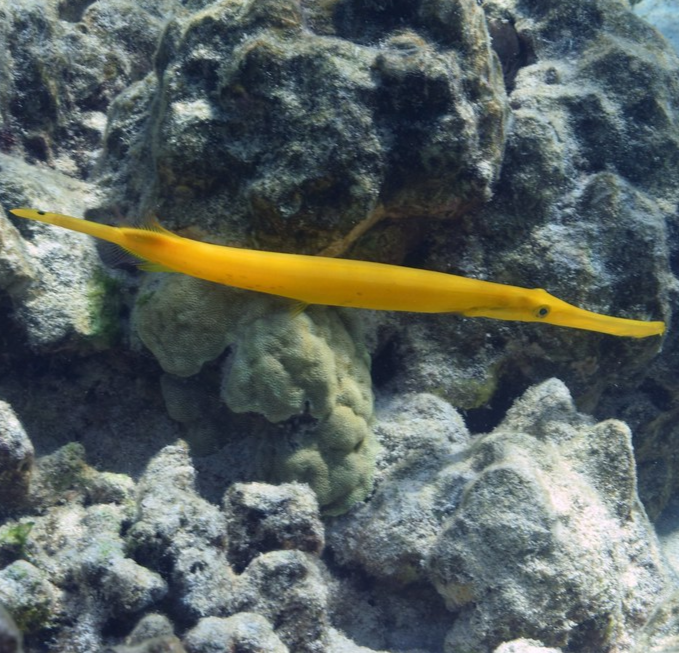 - Jachttechniek: Deze vis jaagt door zijn lange snuit te gebruiken om prooien in koraal en tussen rotsen te vangen.