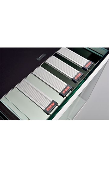 - Kast met hoogglansafwerking (alpine en grafiet) of met moderne, (haptisch) aangenaam gestructureerde houten voorkant