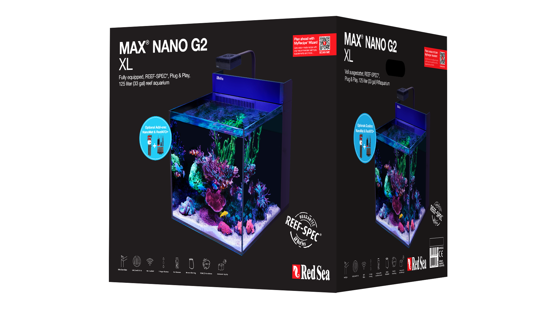 Red Sea brengt de nieuwe MAX NANO G2 XL uit, het diepste en breedste lid van de MAX NANO-serie; ideaal voor liefhebbers van de MAX NANO-systemen die net iets meer ruimte willen voor het gedijen van koralen. De gloednieuwe MAX NANO G2 XL wordt geleverd met alle benodigde apparatuur voor een prachtig huisrif, waardoor de hobbyist zich geen zorgen hoeft te maken over de selectie van componenten of compatibiliteit. Het profiteert van een superieure infrastructuur, optimaal waterbeheer, extra versterkte kasten en 2 nieuwe G2-functies: ReefATO+ en NanoMat-ready achter-sumps.